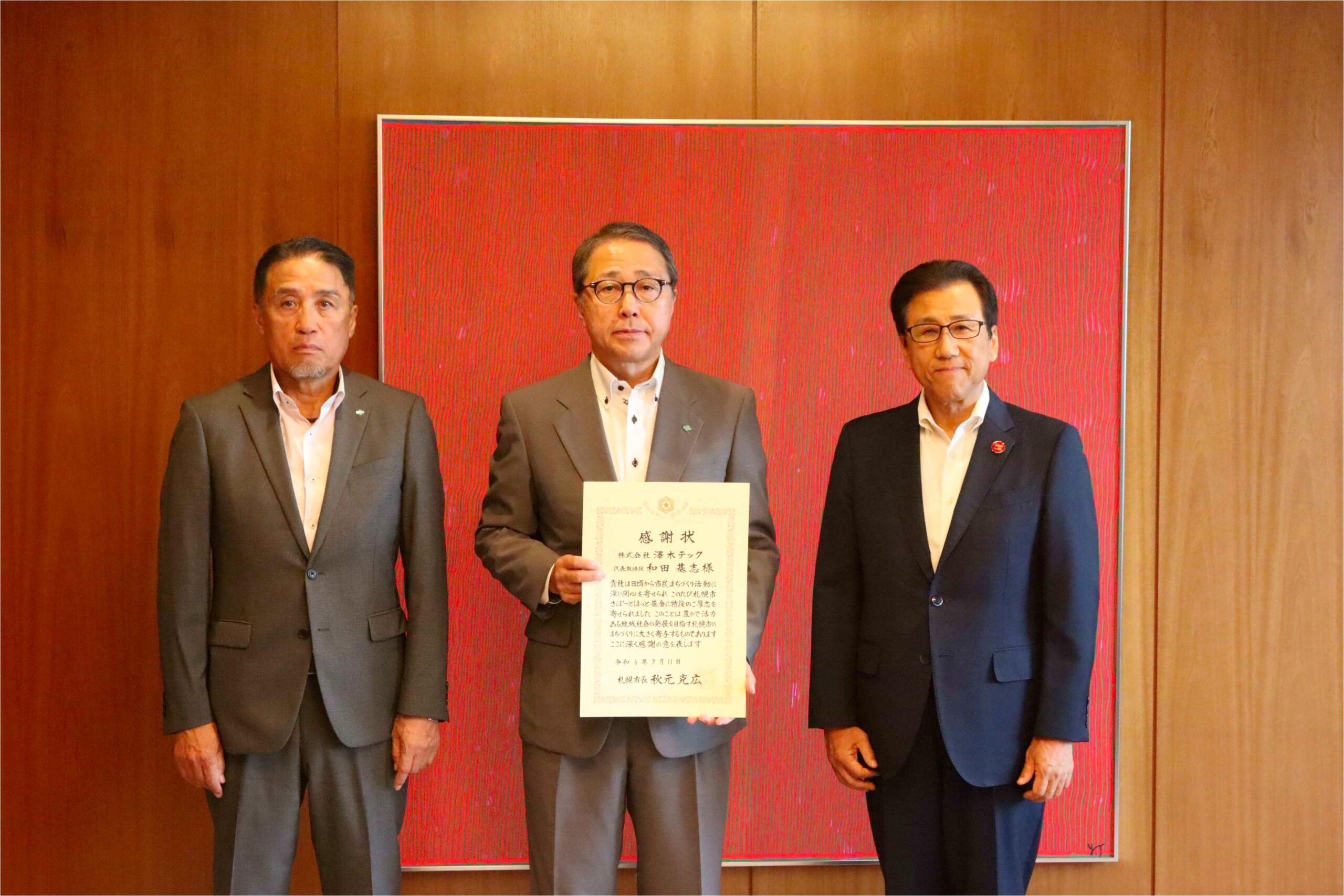 札幌市長より感謝状を贈呈されました。